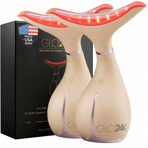 GLO24K Red Light for Face & Neck Beauty Device – 7 in 1 Facial Massager Tool and Neck Care Device
