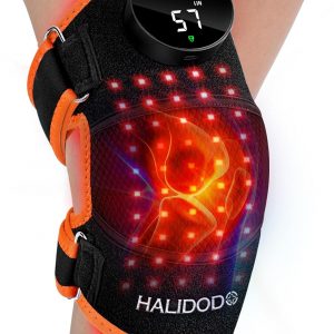 HALIDODO Red Light Therapy, Vibration Massage Knee Brace – Wireless Rechargeable Controller (orange)