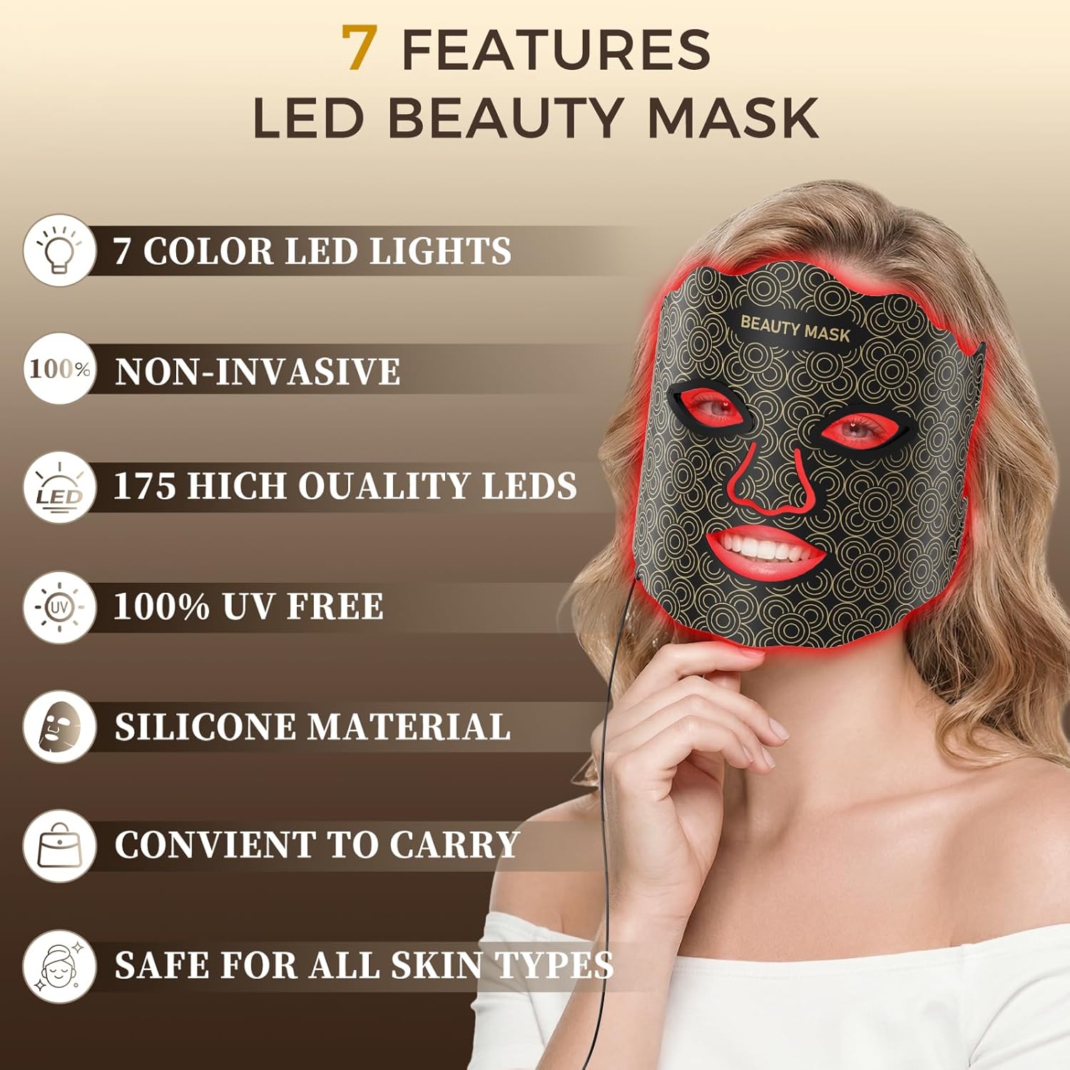 Verfubo Red Light Therapy Face Mask – 850nm Near-Infrared Facial & 7-Color LED Anti-Aging Device (white/black)