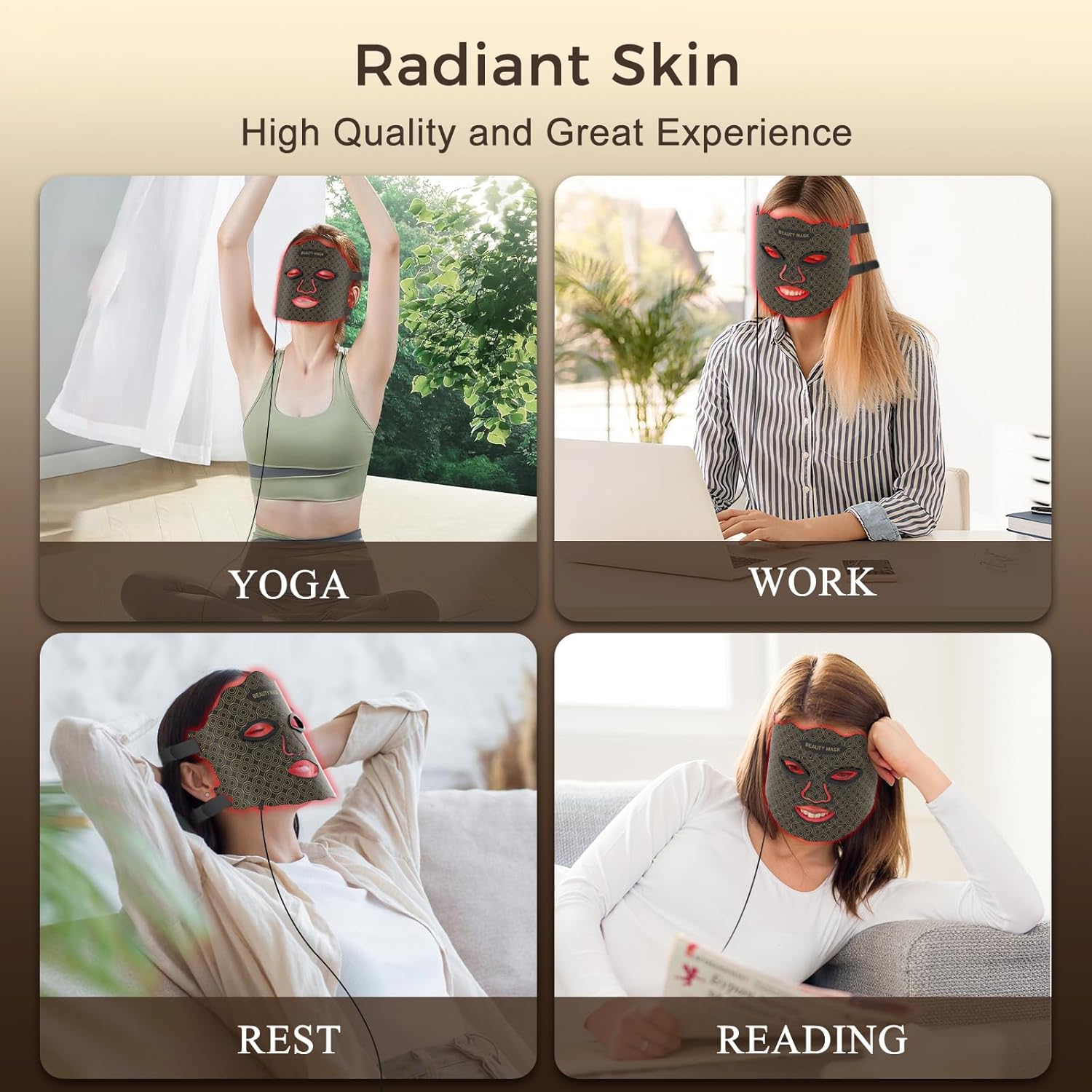 • Comfortable & Safe Design: Crafted from premium – grade silicone, our red light therapy mask offers a perfect blend of comfort and safety. The soft silicone contours to your face, ensuring a snug yet gentle fit, so you can relax and enjoy your infrared light therapy sessions without any discomfort. Our commitment to safety means that you can trust this device to deliver effective results without any harm to your skin.It is equipped with a mobile power bank, and it can plug and play without waiting for charging, even while doing yoga, reading ,sleeping,working,restting or traveling and so on.