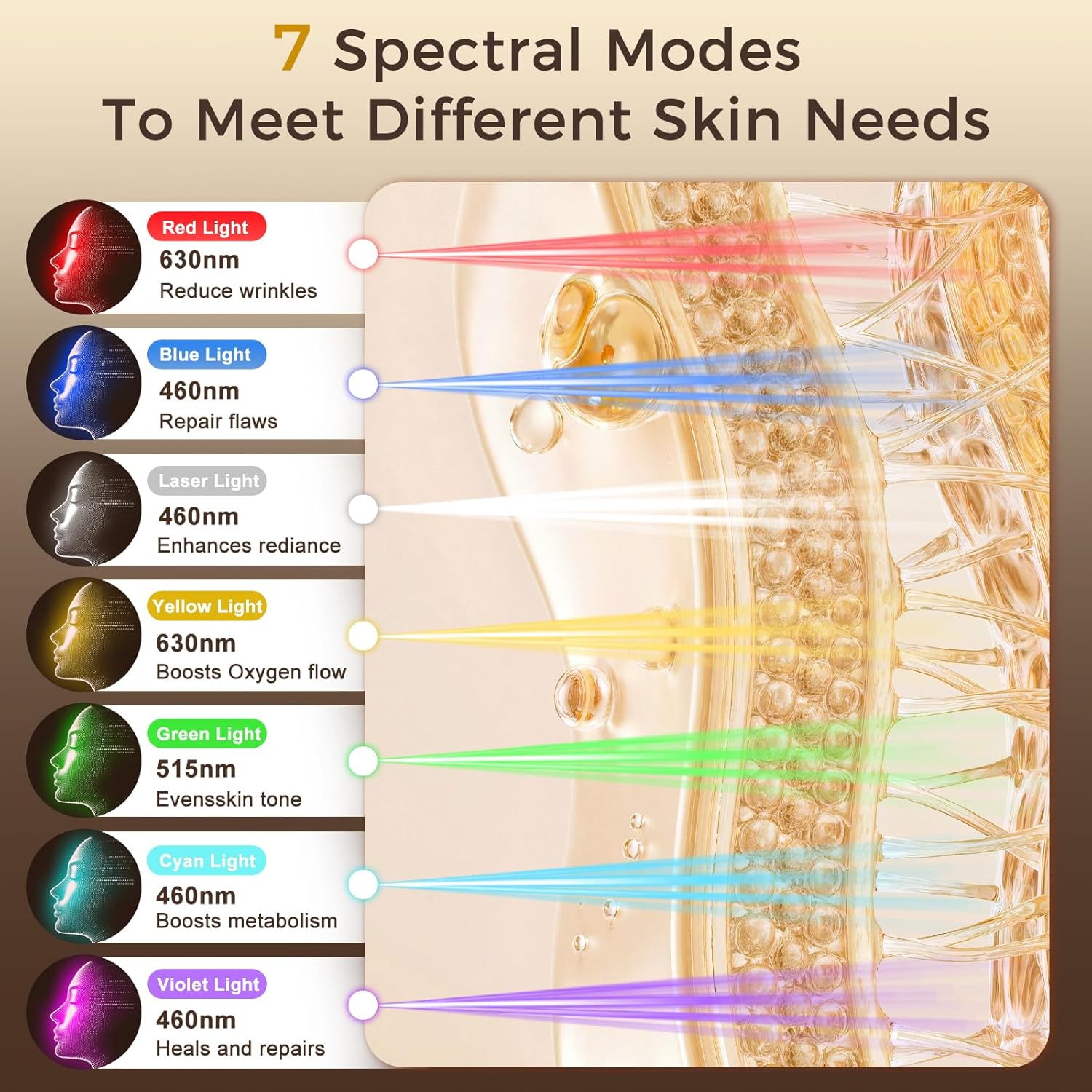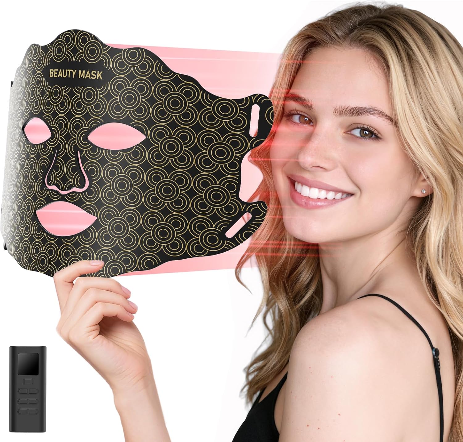 • Clinically Proven Light Therapy: Red light therapy mask for face features medical-grade LEDs with 470nm, 630nm, 660nm, and 850nm wavelengths to smooth fine lines and boost collagen production. Red + Blue Light targets aging and acne, while Blue Light soothes irritation and prevents breakouts. Each 10-minute session delivers 70mW/cm²-100mW/cm² of energy, ensuring deep absorption for safe, effective, and long-lasting skin rejuvenation.