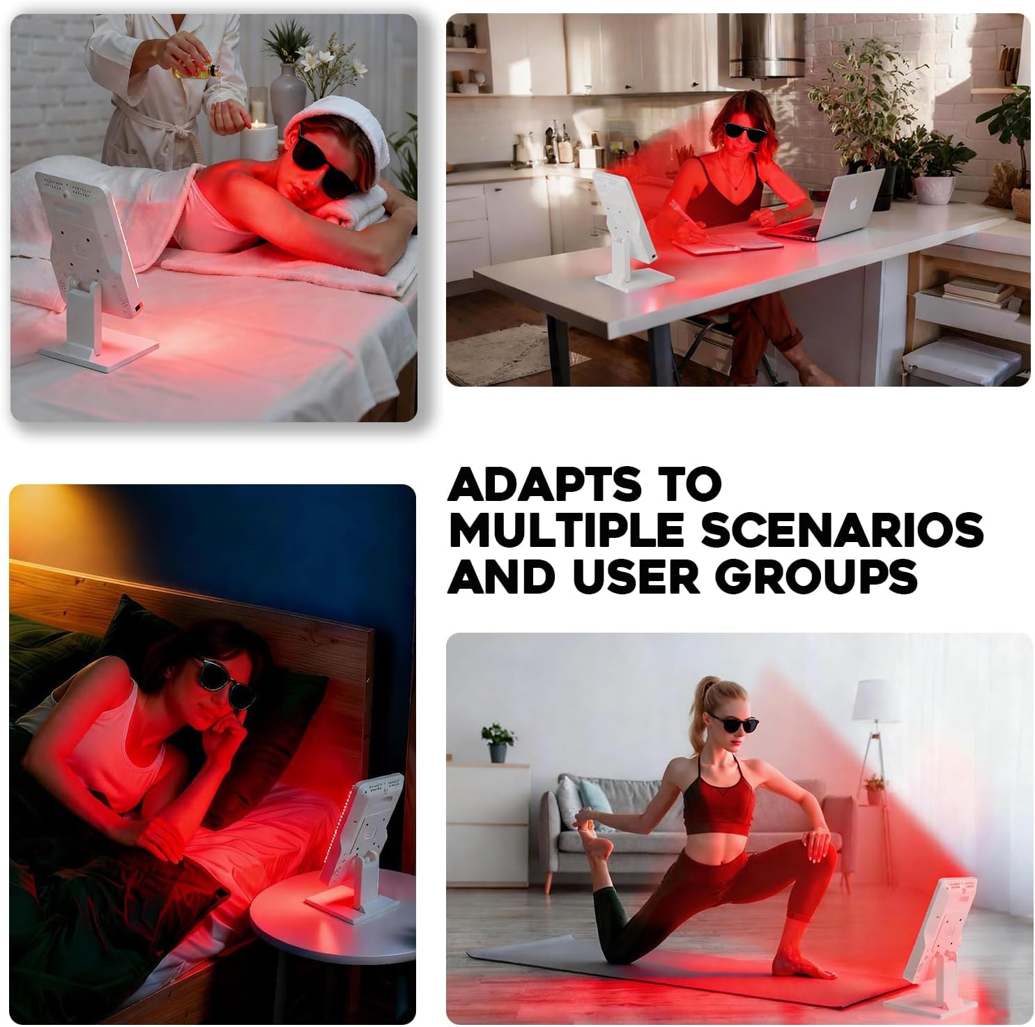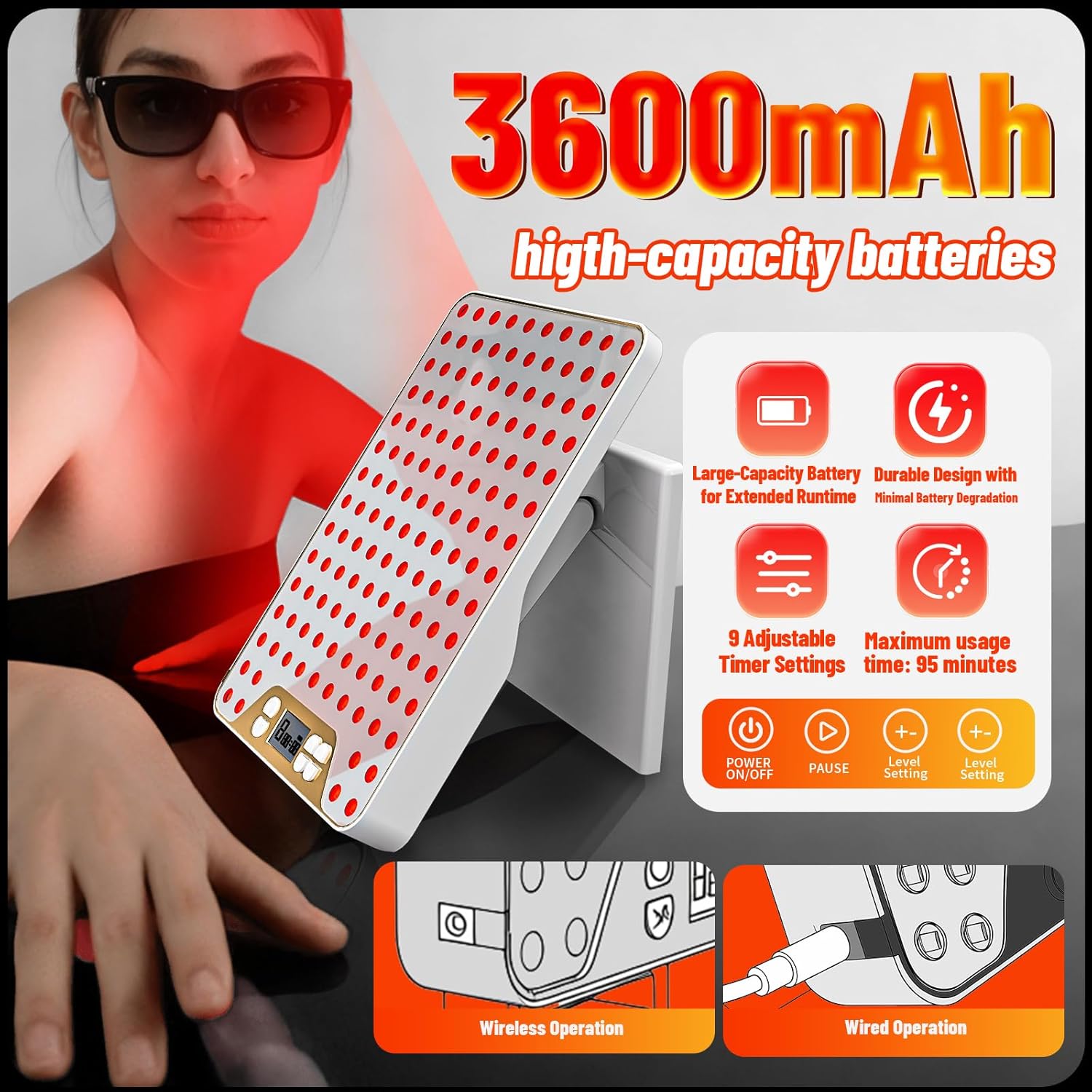 • 90° Adjustable Stand & Cordless Use:Red Light Therapy Panel features a 90° adjustable stand for tilting, flat placement, or hanging—enabling hands-free use. Supports cordless operation with a built-in efficient cooling fan, adapting flexibly to work, leisure, or rest scenarios.